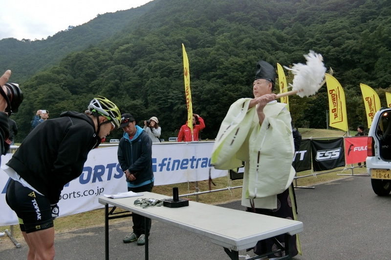 レース前の安全祈願をレーサー代表として。身も心も引き締まる。