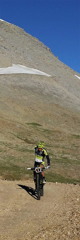 最初の峠はブラックベアー峠(標高3,829メートル)。今レースの最高地点であり、最もチャレンジングな登りだ。全力でも約1時間半はかかる。しかも乗車不可能で押し担ぎのセクションもある。Dillon選手と抜きつ抜かれつのデッドヒートでひたすら登る。開始30分ほどですでに後続は遥か後ろ。